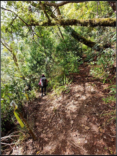 雖然溪床也是被刷深了好幾公尺, 卻幸好仍是堆積型的溪谷, 只要不太再爬岩石, 就是好走很多很多.
